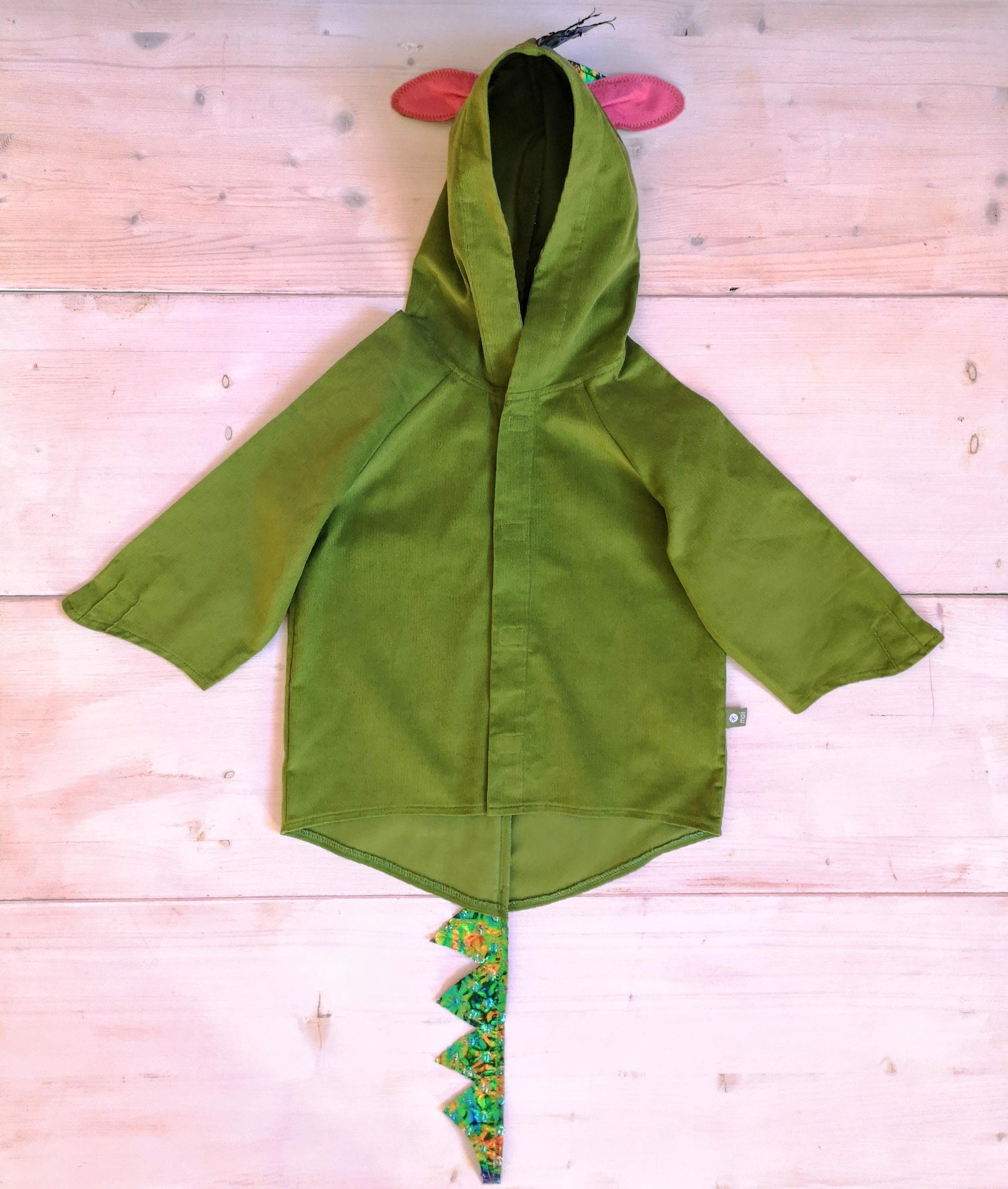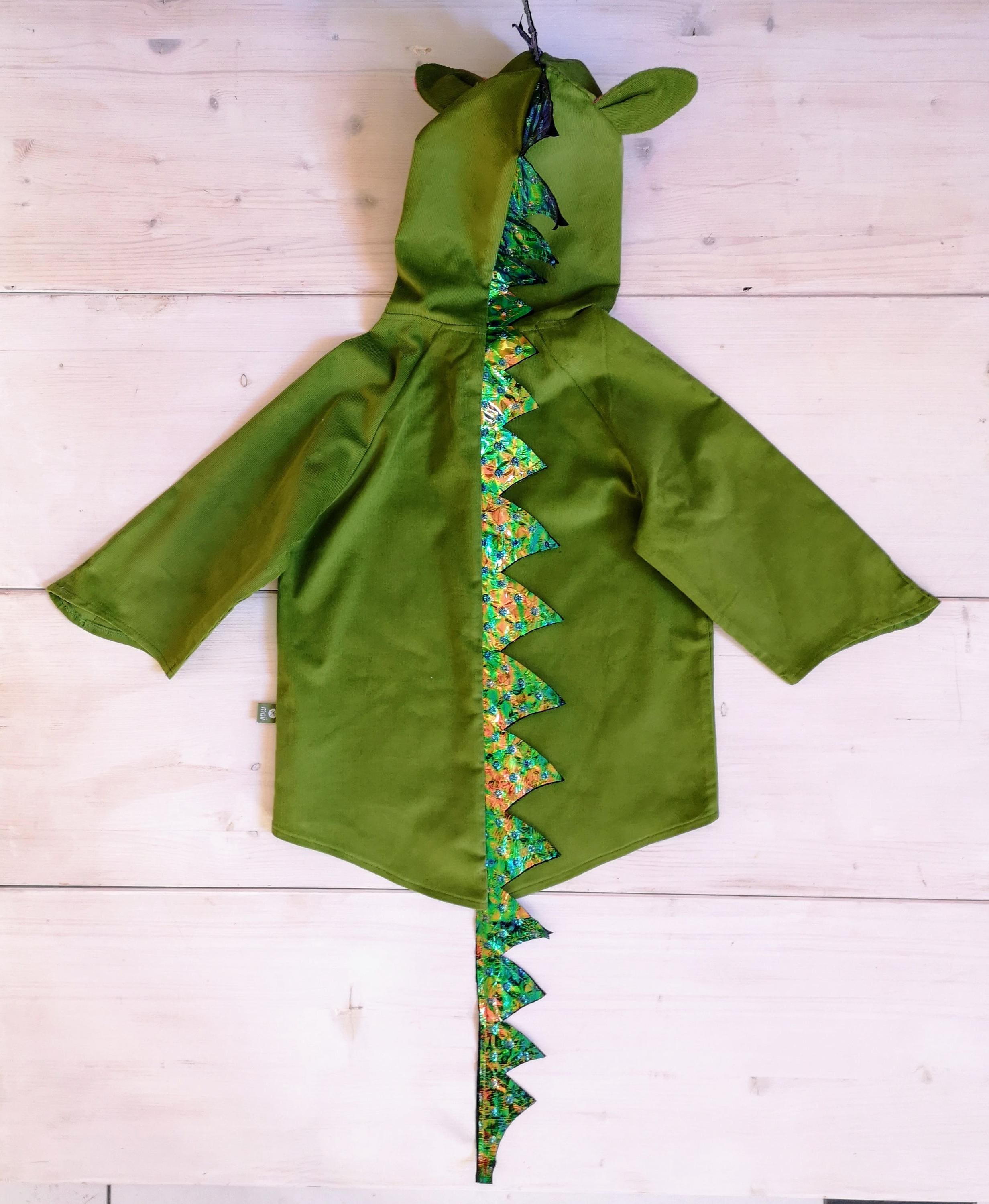 The costume can be worn both as a dressing up and, if the children do not want to undress, even as a everyday jacket. It can be easily closed by children's hands with Velcro and is made of 100% cotton cord, only the effects of the costume, the dragon's spikes, consists of 100% PES.