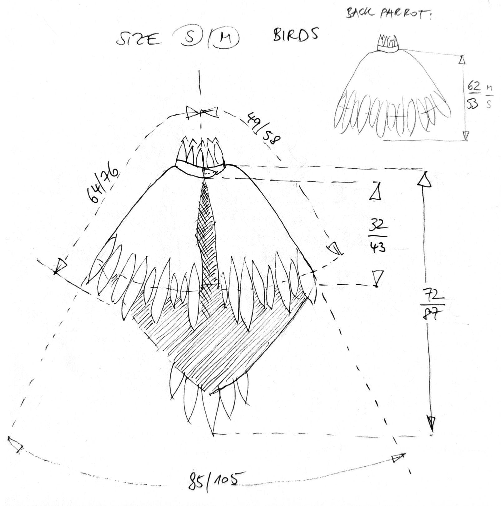 Our hummingbird is designed as a cape and thus fits children from about 4-9 years. It can be easily closed by children's hands with a Velcro at the neck and is made of 100% cotton corduroy, only the effects of the costume, the "feathers" are made of felt.